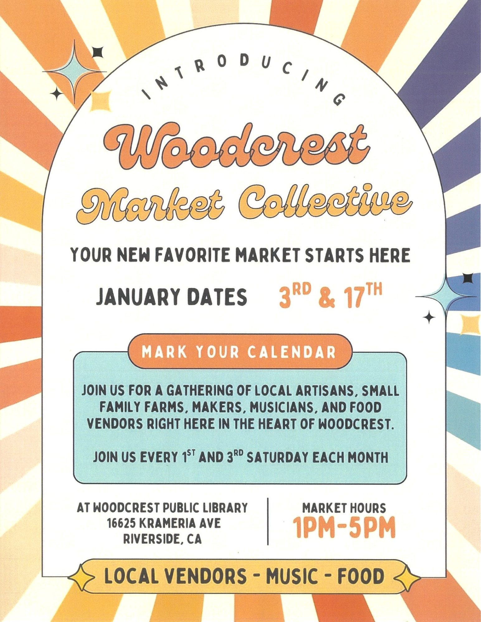 Join us for a gathering of local artisans, small family farms, makers, musicians, and food vendors right here in the heart of Woodcrest.